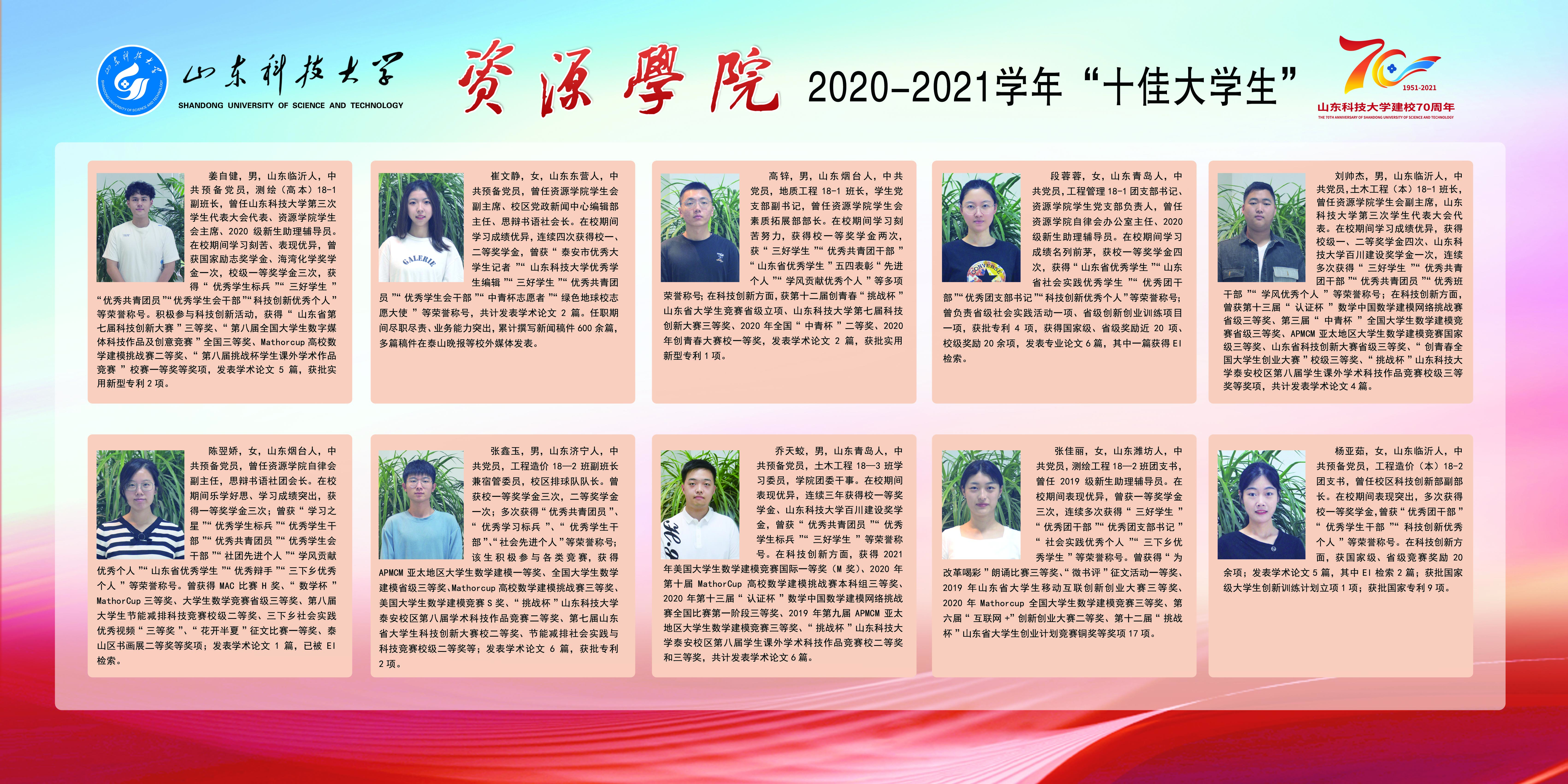 sunbet申搏官方网站2020-2021学年“十佳大学生”