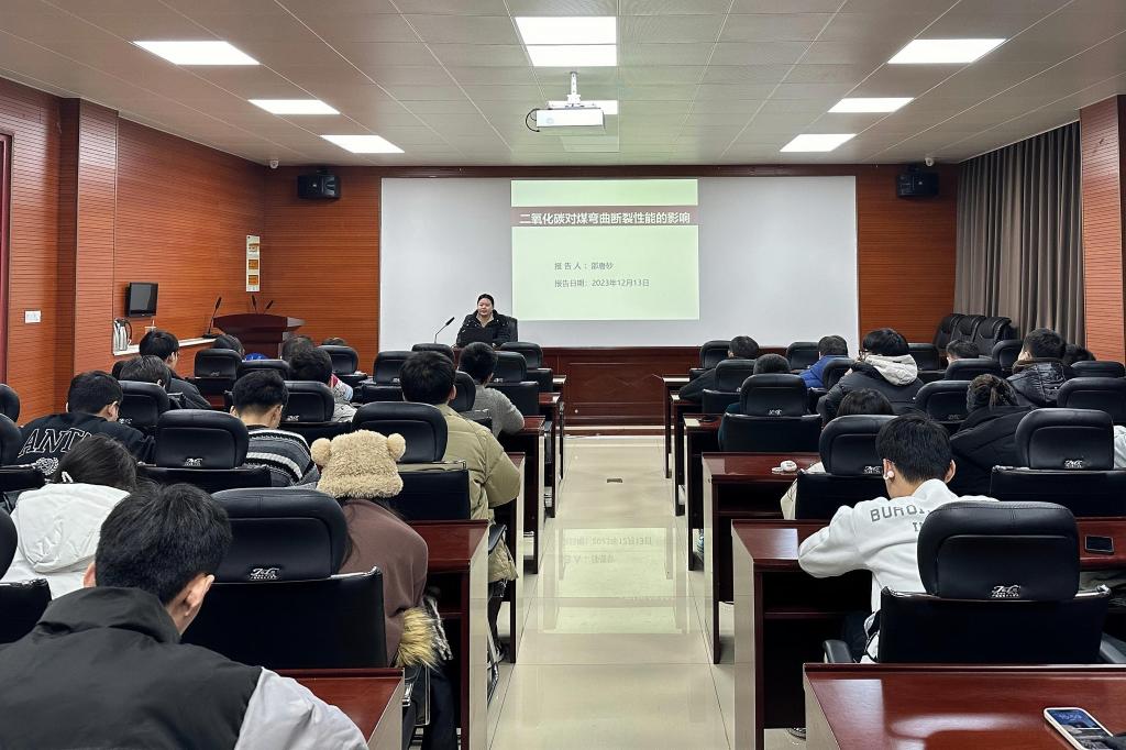 12月13日,sunbet申搏官方网站教师邵唐砂在东校园2号楼201会议室为研究生作“二氧化碳对煤弯曲断裂性能的影响研究”学术报告。