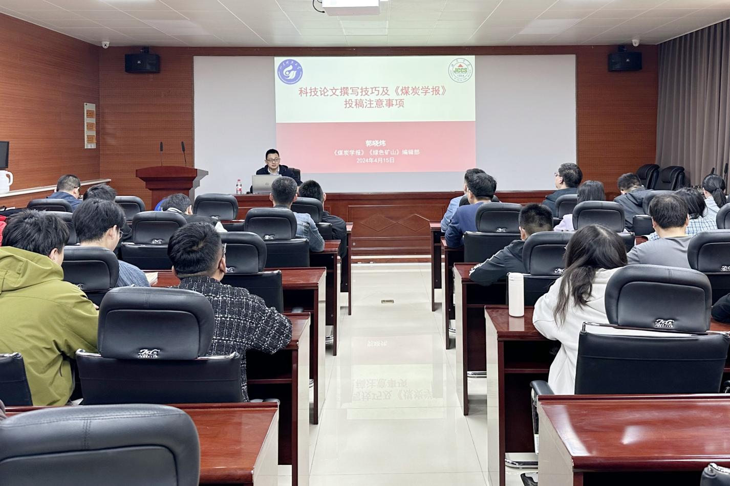 4月15日,sunbet申搏官方网站邀请《煤炭学报》 《绿色矿山》编辑部副主任郭晓炜在东校园2号楼201会议室作题为“科技论文撰写技巧及《煤炭学报》投稿注意事项”报告会,相关专业教师和研究生代表参加。