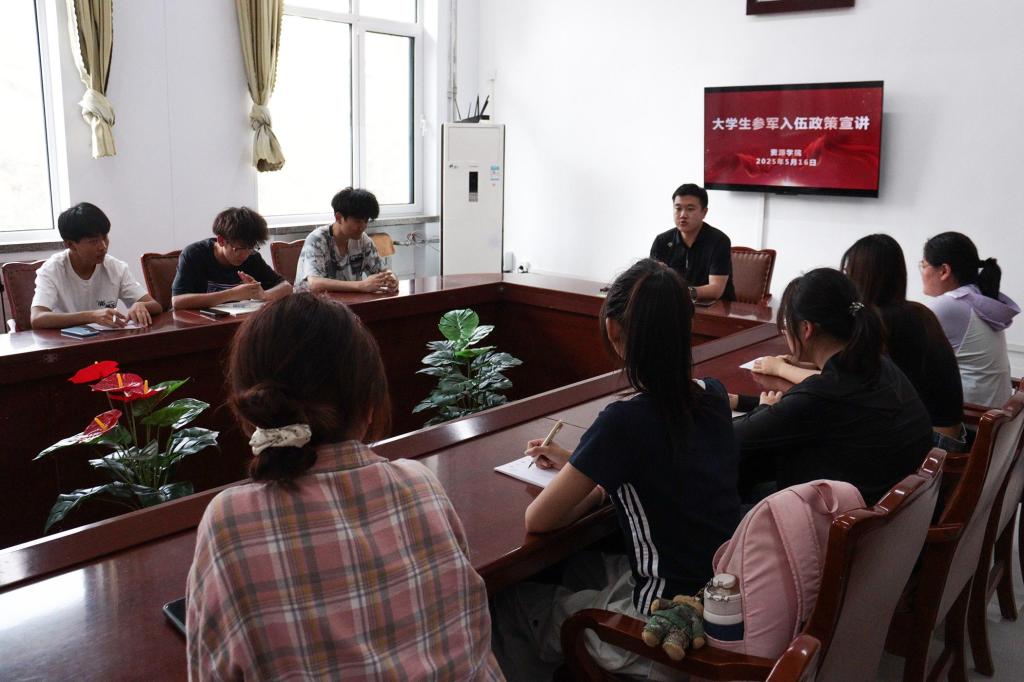此次宣讲会进一步加深了同学们对参军入伍的认识,激发了同学们参军入伍、报效祖国的热情,为学院后续征兵工作的顺利开展奠定了良好的基础。(文:刘京宁 图:李已夏)